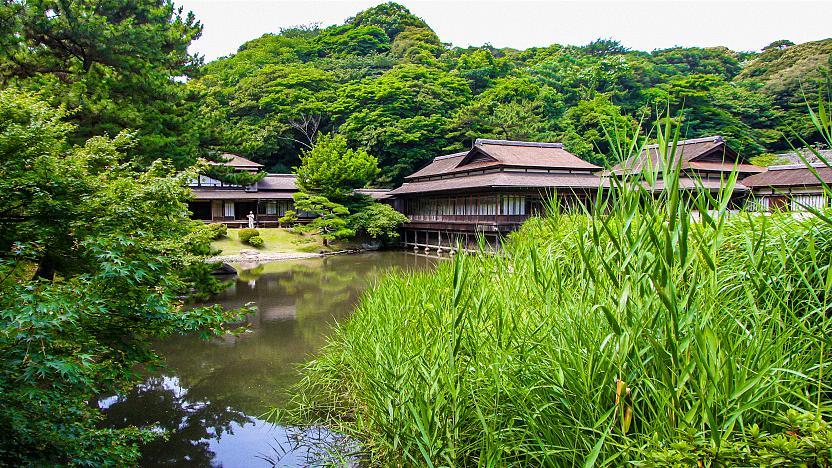 خانههای چای در نقاط مختلف باغ، از قرنهای شانزدهم و هفدهم، با سقفهای نی و دیوارهای گِلی بازسازی شدهاند. در آنها آیین سنتی چای برگزار میشود که نمادی از هماهنگی میان طبیعت، انسان و سکوت است.